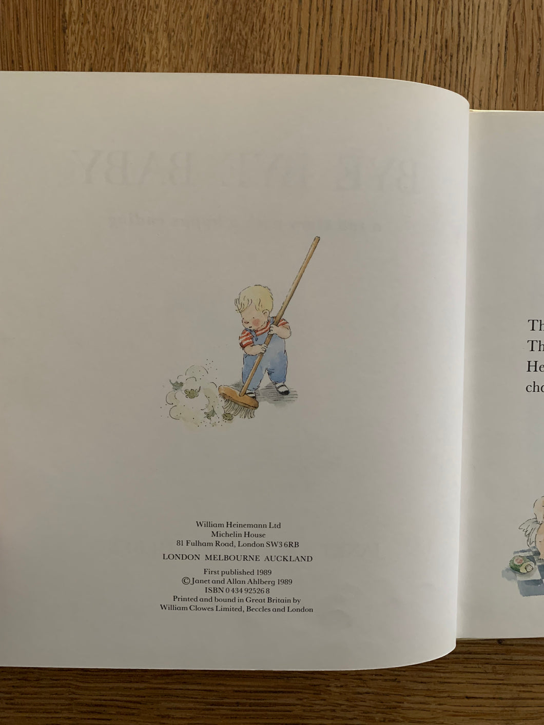 ‘Bye Bye Baby’ by Allan Ahlberg. Illustrated by Janet Ahlberg. Published by Heineman. 1989. UK 1st edition. Laminated pictorial boards in matching dust wrapper.