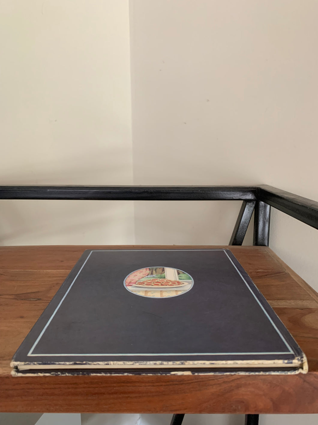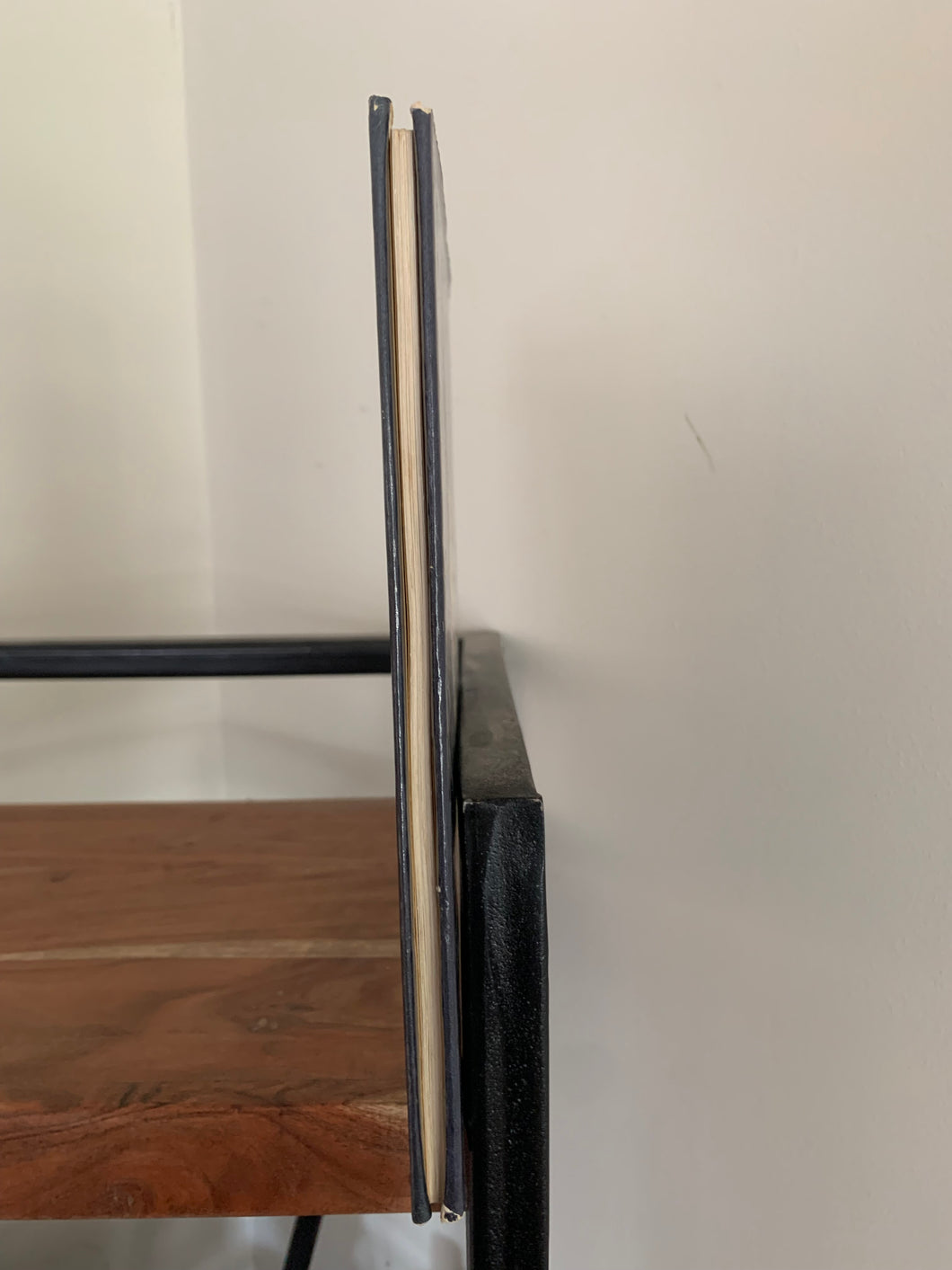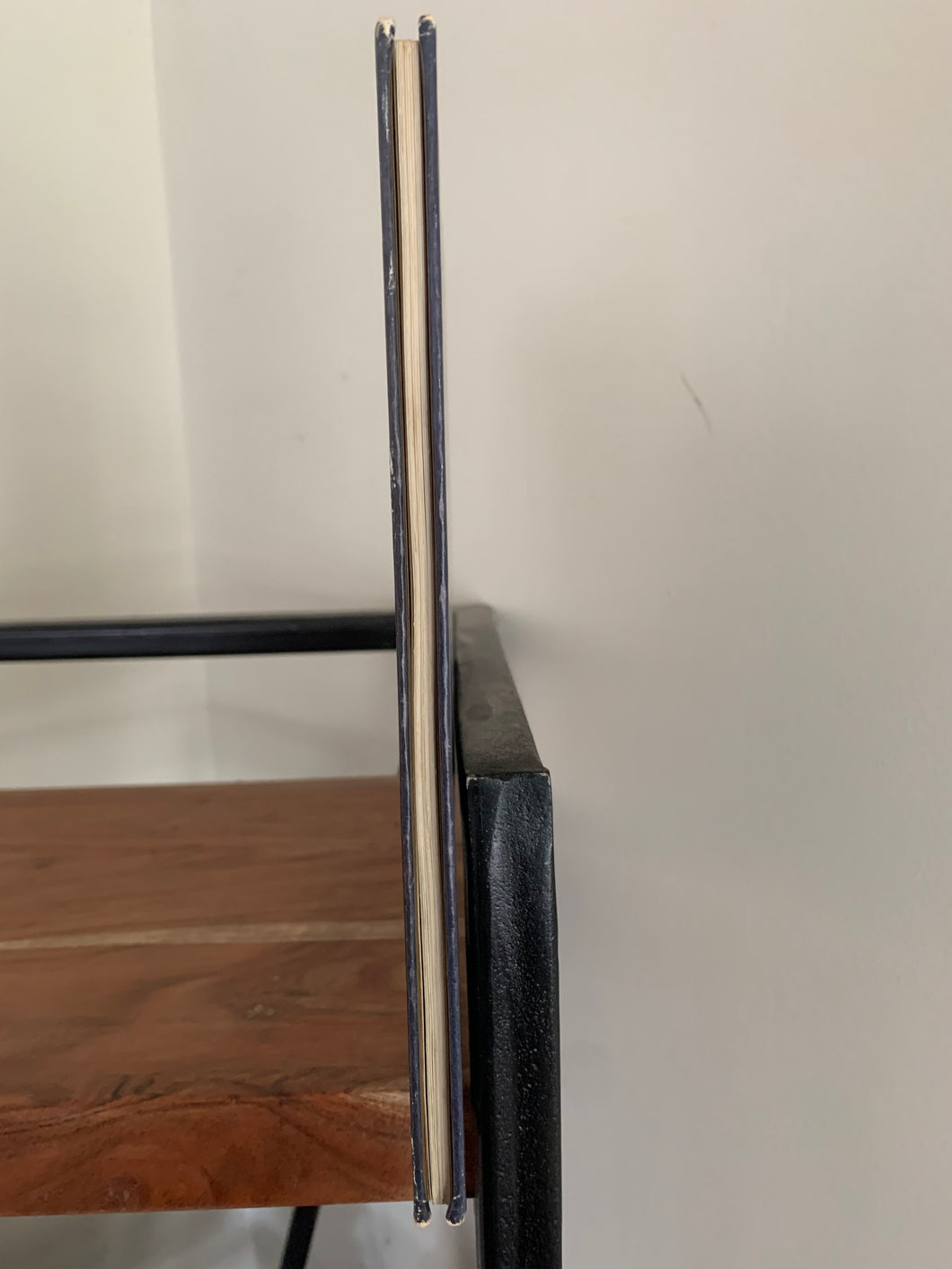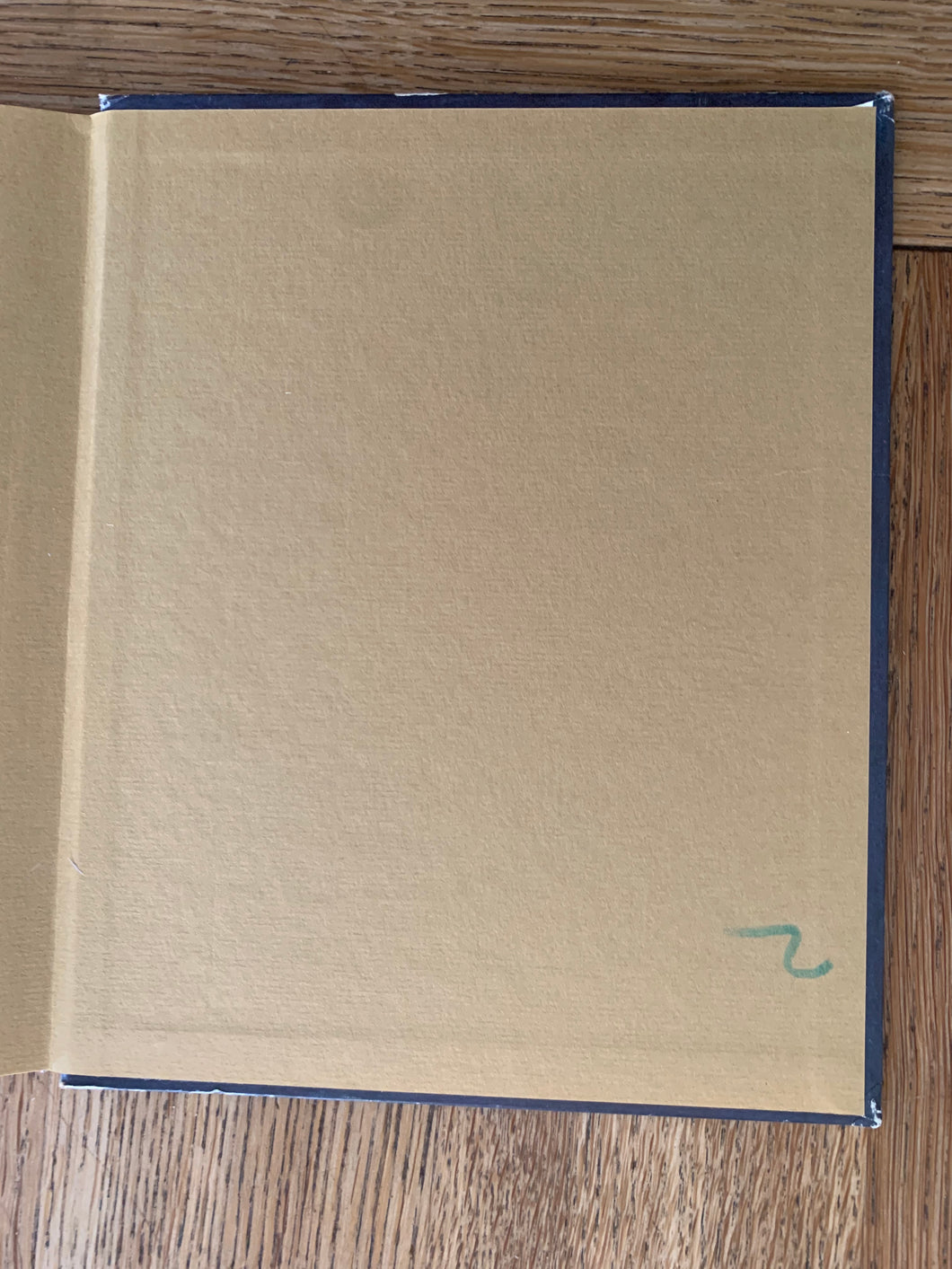The book is in very good condition with no  inscriptions, with wear to the top and base of the spine, corners and bottom edge of both covers. There is light foxing to most of the top edges of the pages. The number 2 is written on the inside cover, which is completely obscured by the inside flap of the wrapper.