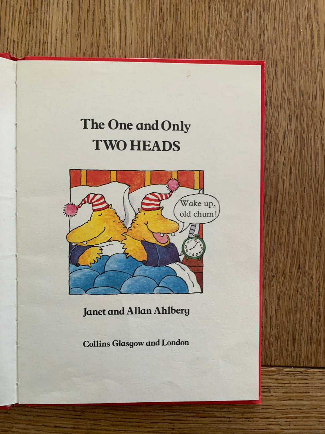 ‘The One and Only Two Heads’ written and illustrated by Janet & Allan Ahlberg. Published by Collins. 1979. UK 1st edition. Laminated pictorial boards. No dust wrapper as issued.