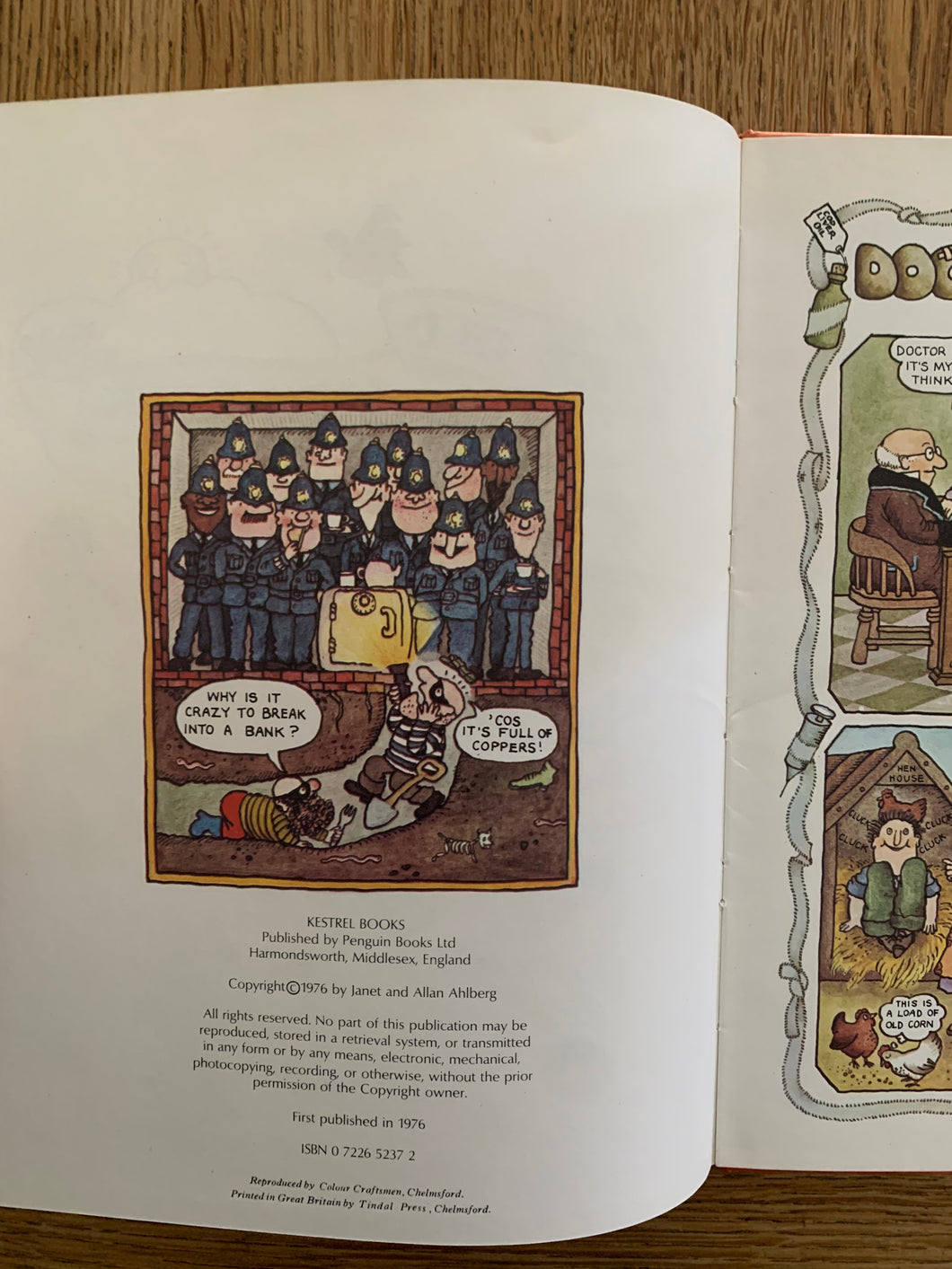 ‘The Old Joke Book’ by Allan Ahlberg. Illustrated by Janet Ahlberg. Published by Kestrel Books. 1976. UK 1st edition. Laminated pictorial boards. No dust wrapper as issued.