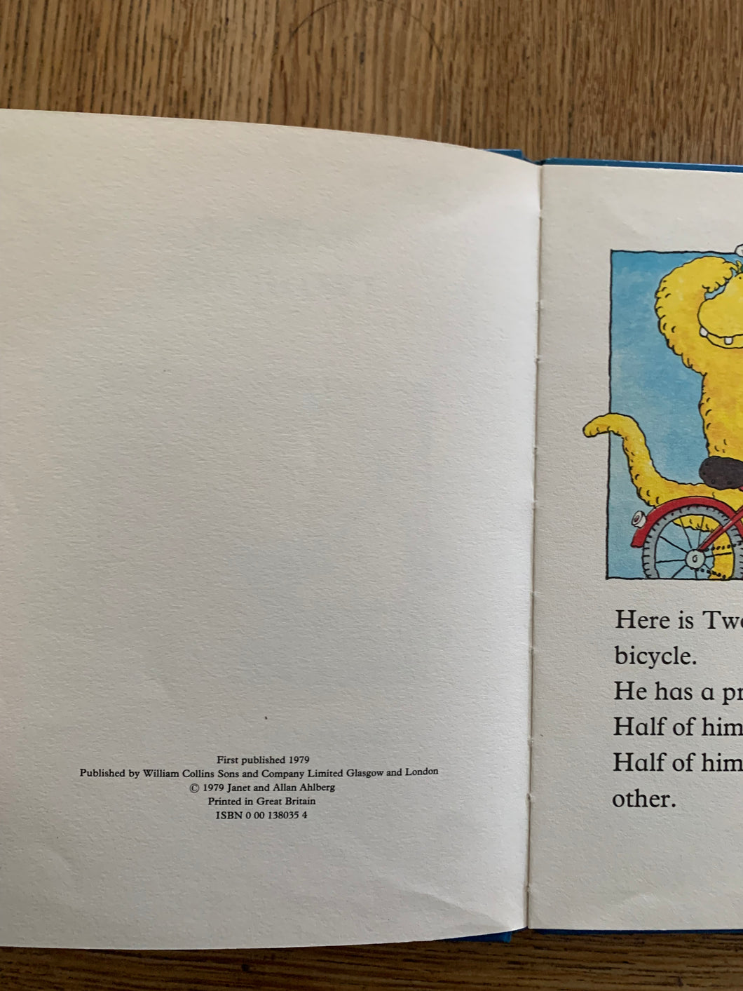 ‘Two Wheels Two Heads’ written and illustrated by Janet & Allan Ahlberg. Published by Collins. 1979. UK 1st edition. Laminated pictorial boards. No dust wrapper as issued.