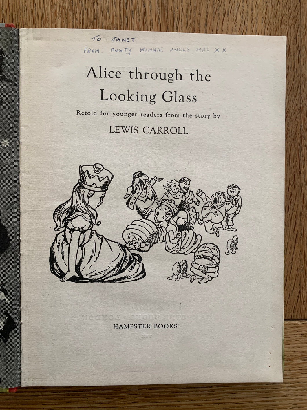 'Alice Through the Looking Glass’ by Lewis Carroll. Published by Hampster Books. 1968. UK 1st edition. Pictorial boards with matching dust wrapper.