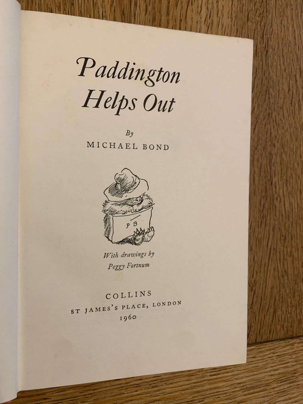 ‘Paddington Helps Out' by Michael Bond. Illustrated by Peggy Fortnum. Published by  Collins. 1960. UK 1st edition. No dust wrapper.