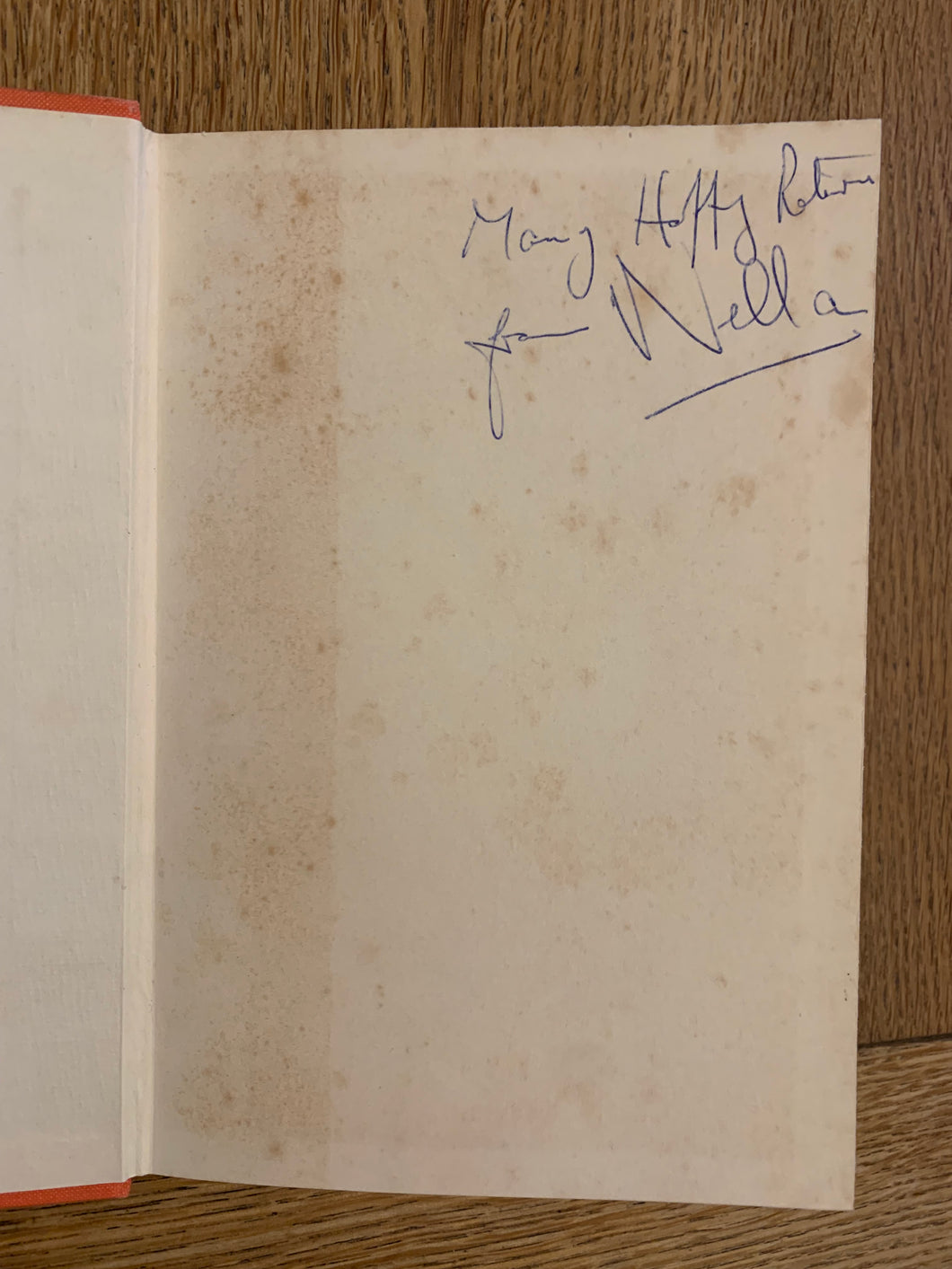 The book is in very good condition with foxing to both end papers and a gift inscription to the fep, all other pages are clear and bright. There is light foxing to the page fore-edges and a couple of marks to the spine and rear cover.