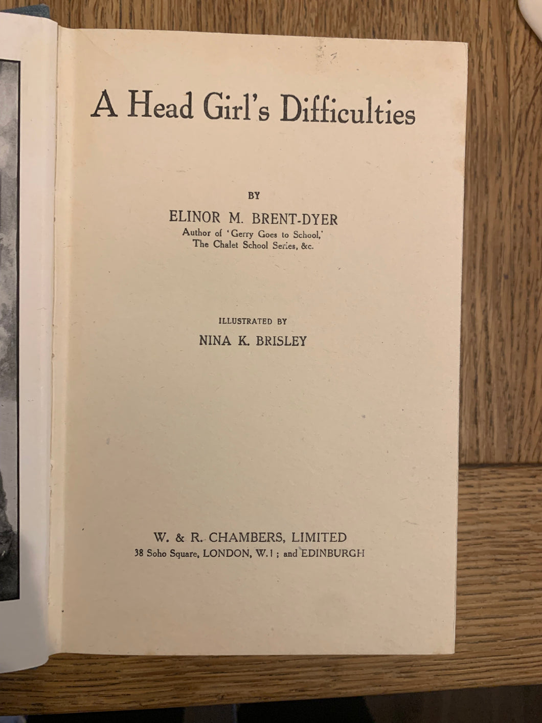 'Head Girl Difficulties' by Elinor M. Brent Dyer. Illustrated by Nina K. Brisley. Published by Chambers. 1941. UK 4th printing.