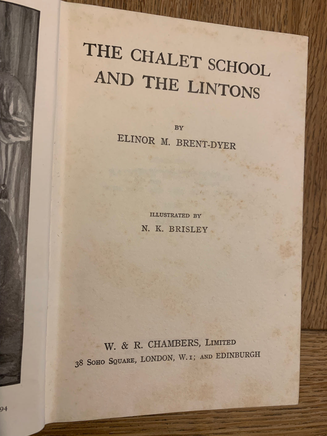 'The Chalet School and the Lintons' by Elinor M. Brent Dyer. Illustrated by Nina K. Brisley. Published by Chambers. 1940. UK reprint edition.