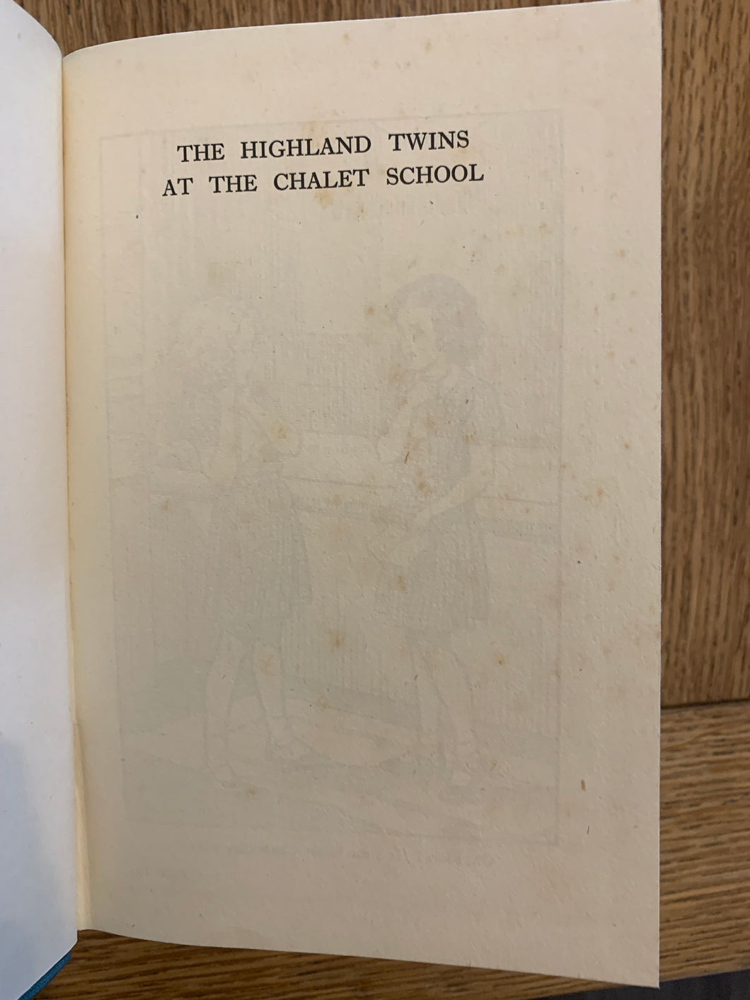 'The Highland Twins at the Chalet School' by Elinor M. Brent Dyer. Illustrated by Nina K. Brisley. Published by Chambers. 1942. UK 1st edition.