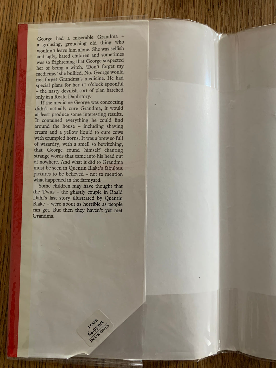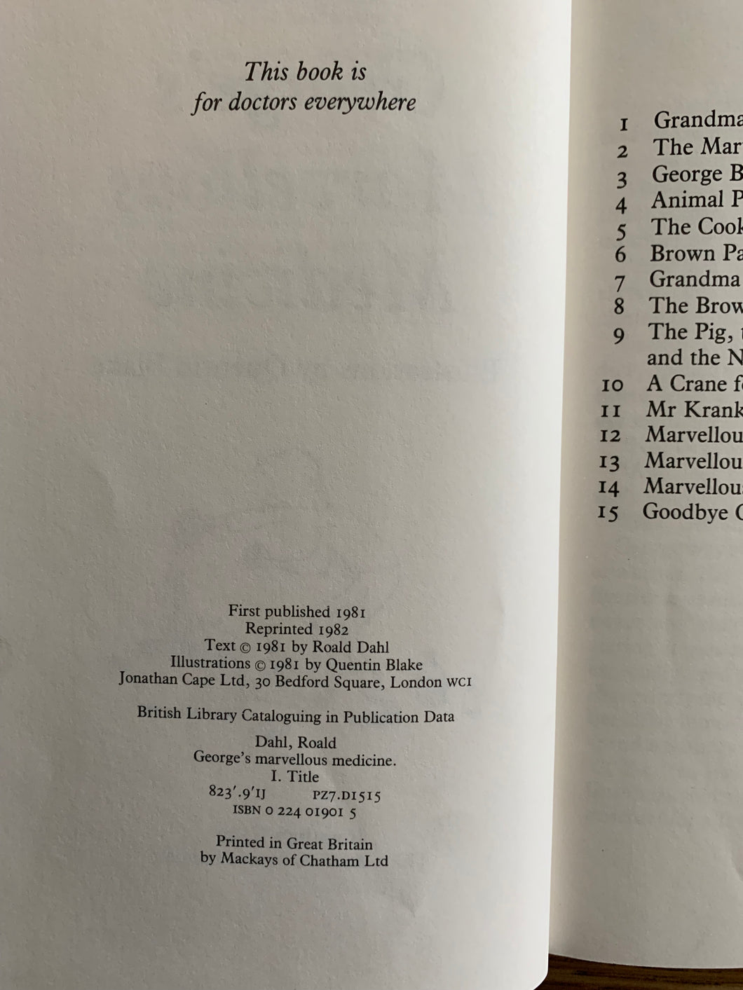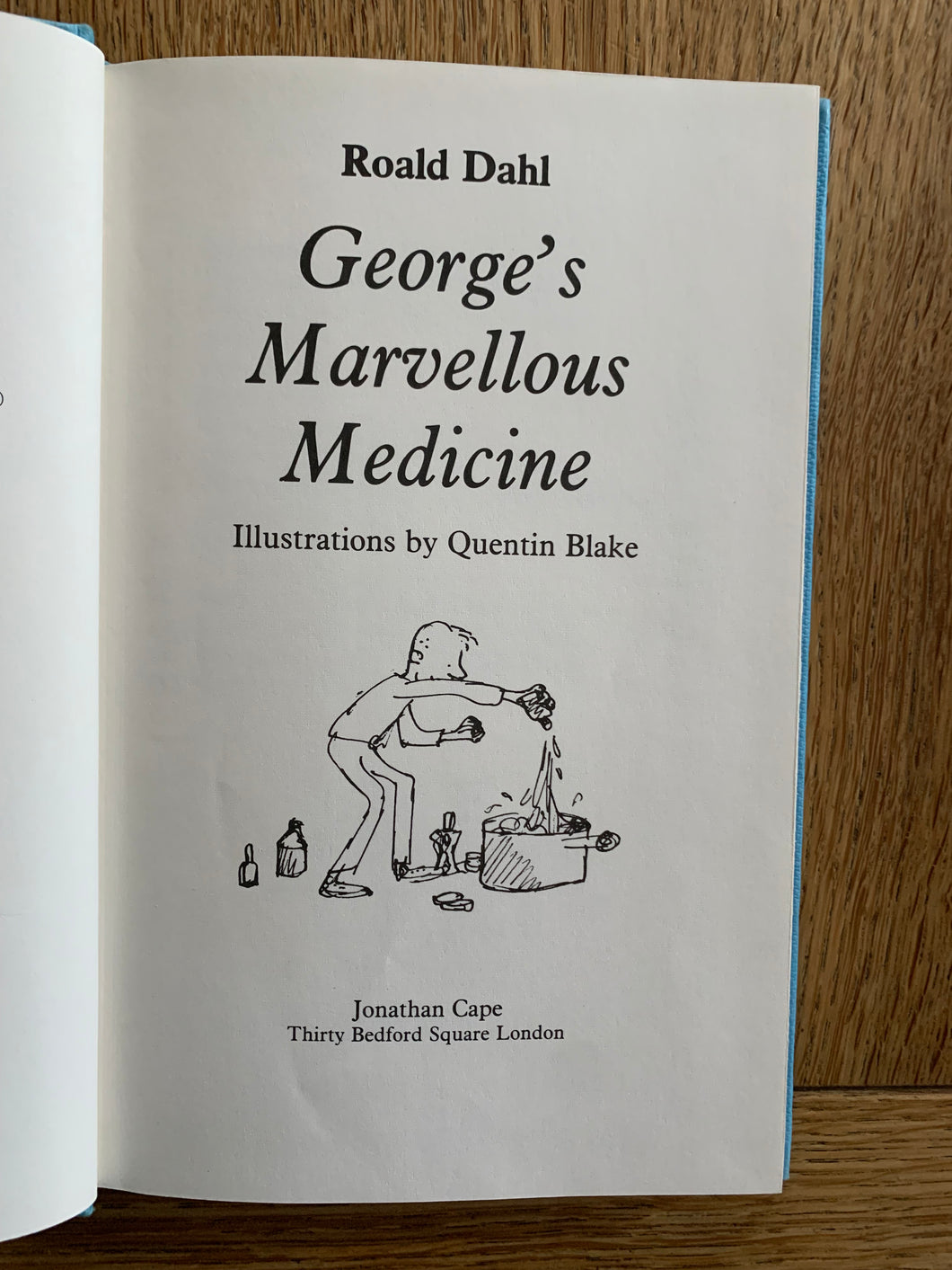 ‘George's Marvellous Medicine' written by Roald Dahl. Illustrated by Quentin Blake. Published by Jonathan Cape. 1982. UK 1st reprint edition.