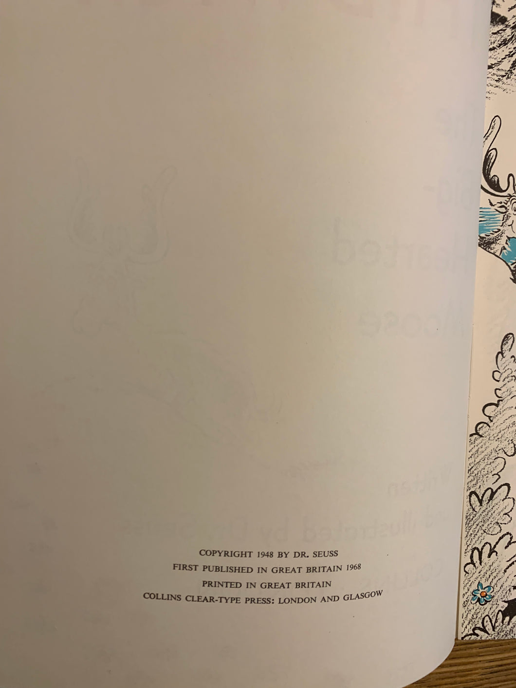 ‘Thidwick - The Big-Hearted Moose' written and illustrated by Dr Seuss. Published by Collins. 1968. UK1st edition. Pictorial boards.