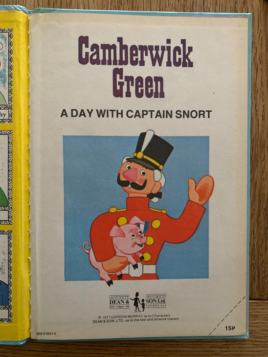 ’Camberwick Green - A Day With Captain Snort’ from Gordon Murray's BBC TV programme. Published by Dean. 1971. UK 1st edition. Laminated pictorial boards. No dust wrapper as issued.