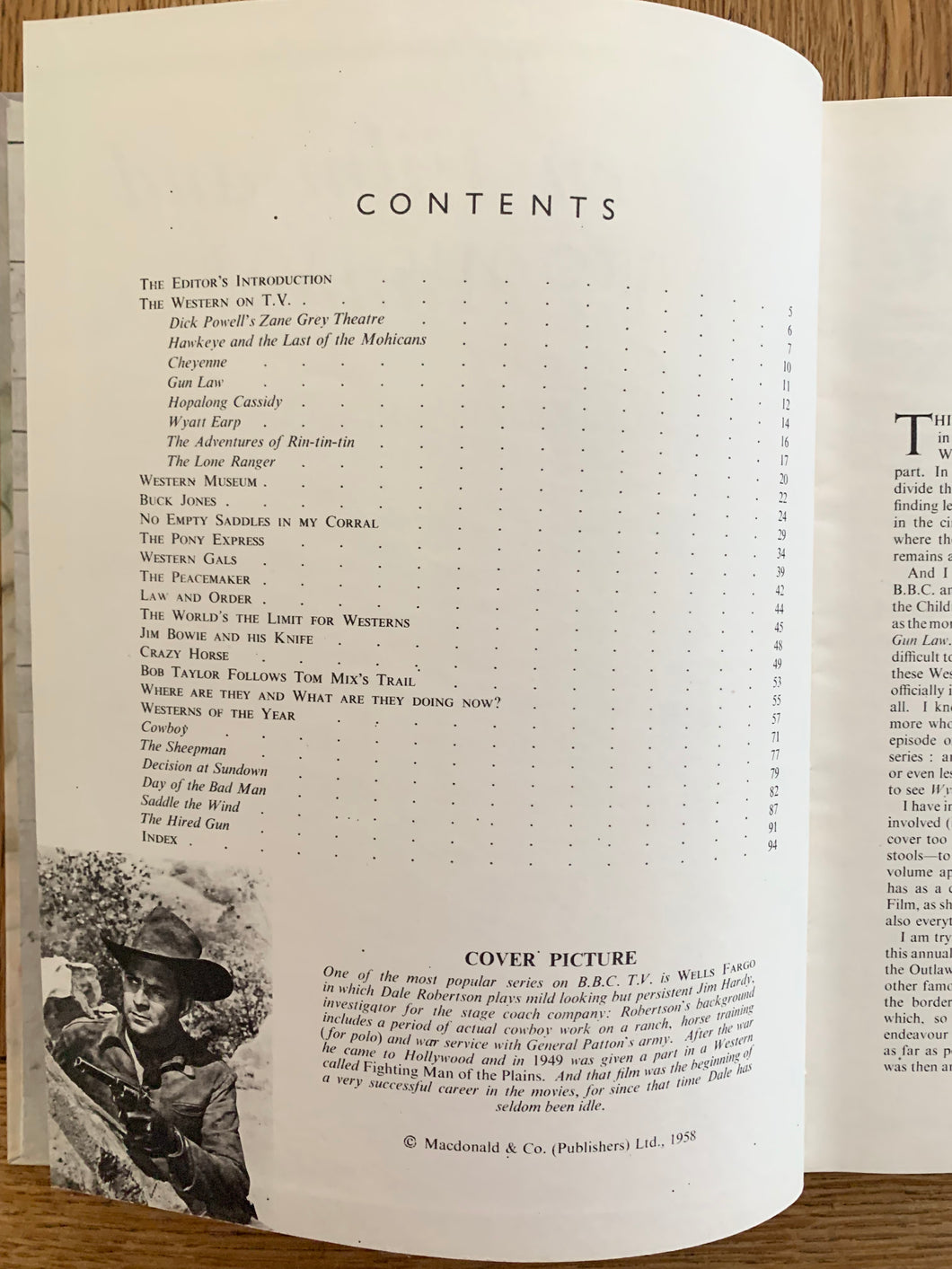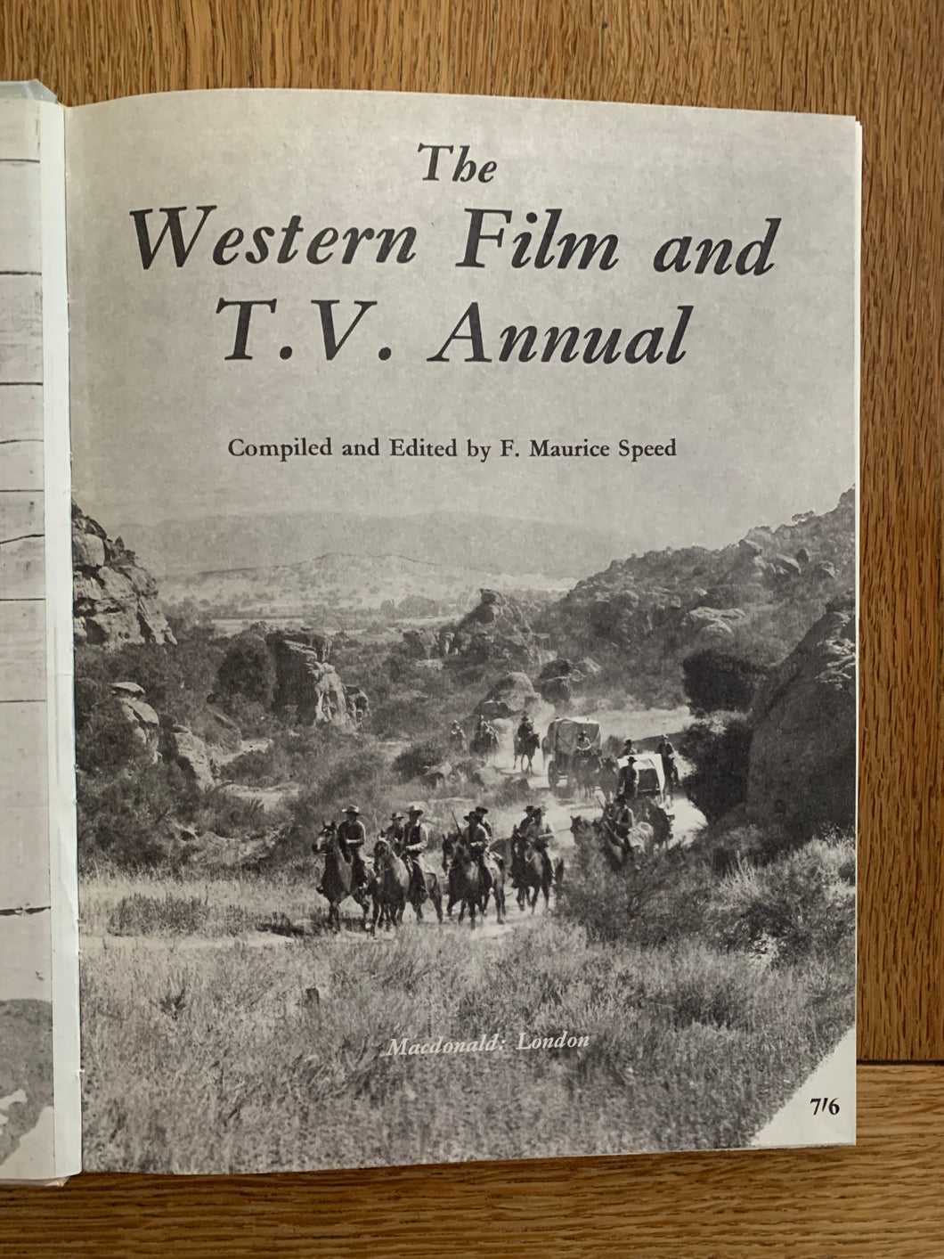 'The Western Film and TV Annual' edited and compiled by F. Maurice Speed. Published by Macdonald. 1958. UK 1st edition. Laminated pictorial boards. No dust wrapper as issued.