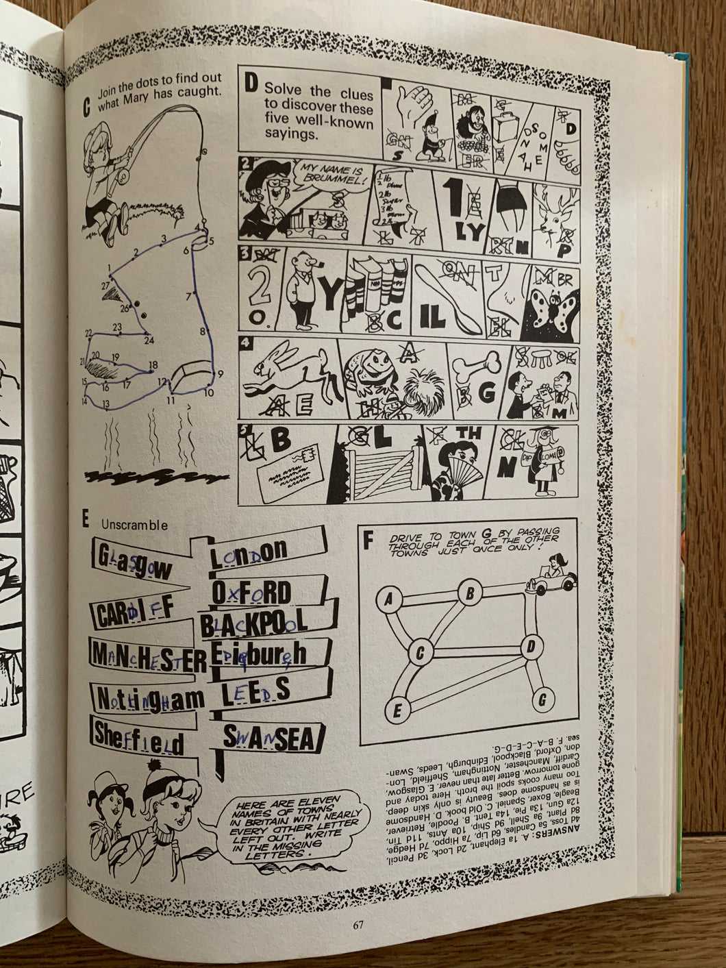 The book is in very good + condition with no marks or inscriptions, with very light bumping to the top/base of the spine and corners. The book is not price clipped and the puzzles have been completed in ink.