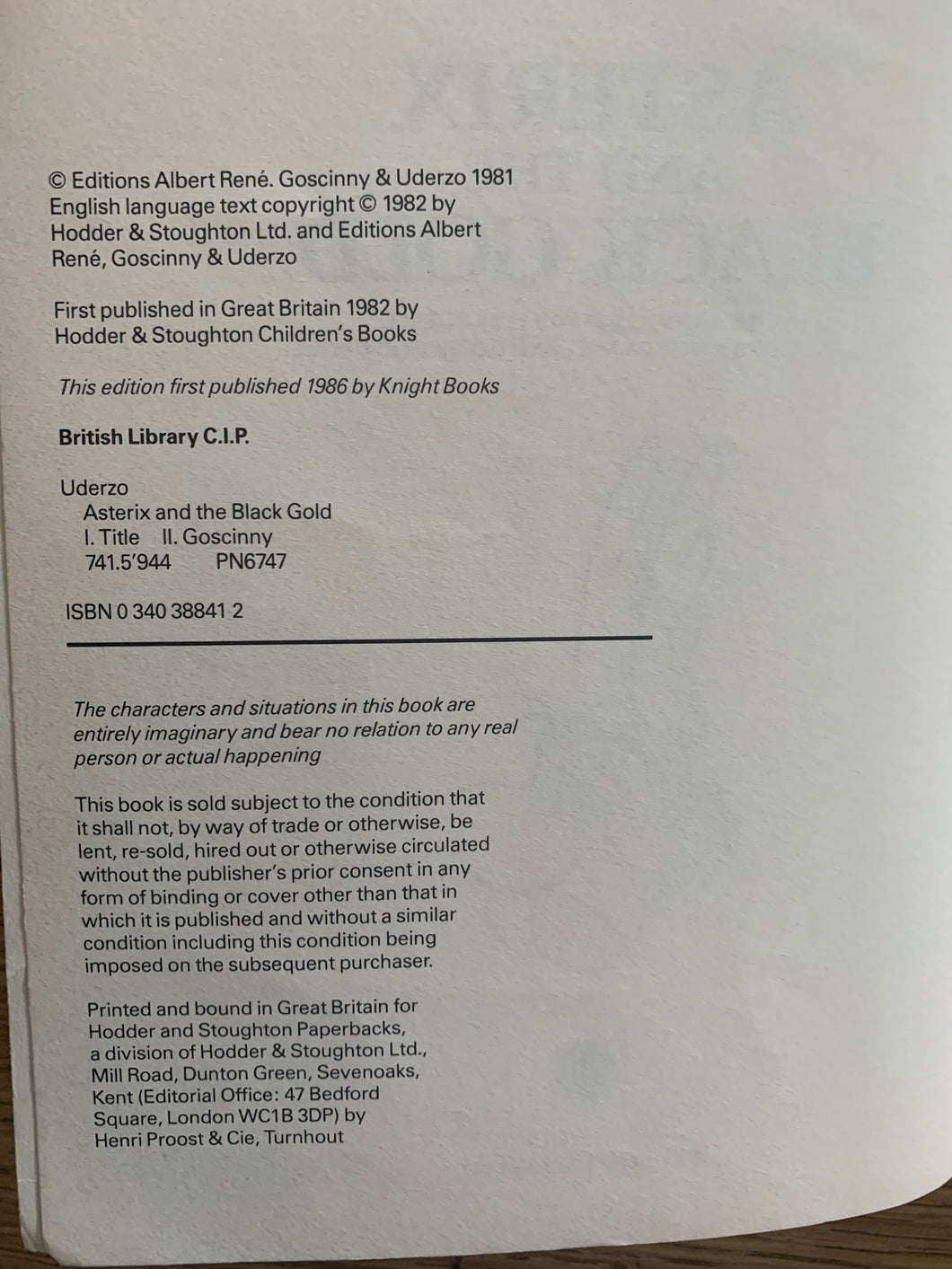 ‘Asterix and the Black Gold’ by Goscinny and Uderzo. Published by Knight Books. 1986. UK 1st edition thus. Card covers. No dust wrapper as issued.