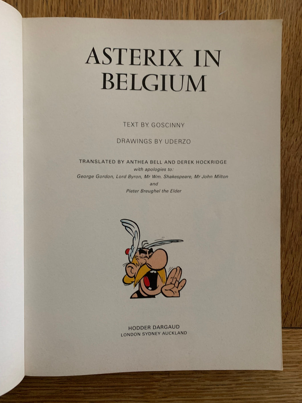 ‘Asterix in Belgium’ by Goscinny and Uderzo. Published by Hodder and Stoughton. 1983. UK 1st edition thus. Card covers. No dust wrapper as issued.