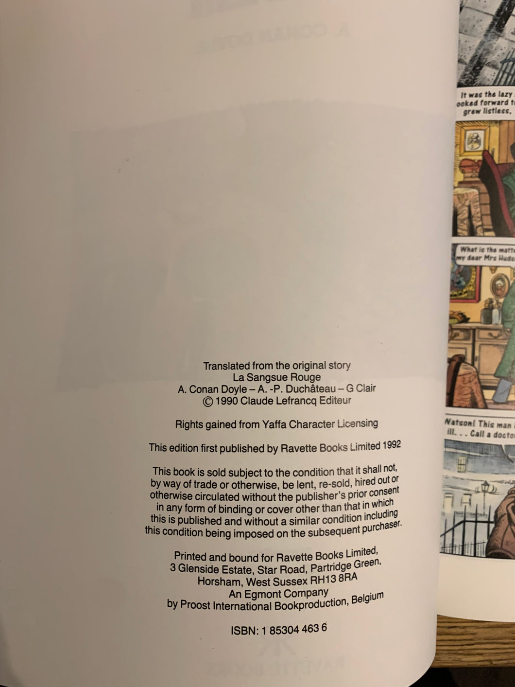 ‘Sherlock Holmes: The Red Death’ by A Conan Doyle. Adapted by A.P. Duchateau. Illustrated by G. Clair. Published by Ravette Books. 1992. UK 1st edition. Card covers. No dust wrapper as issued.