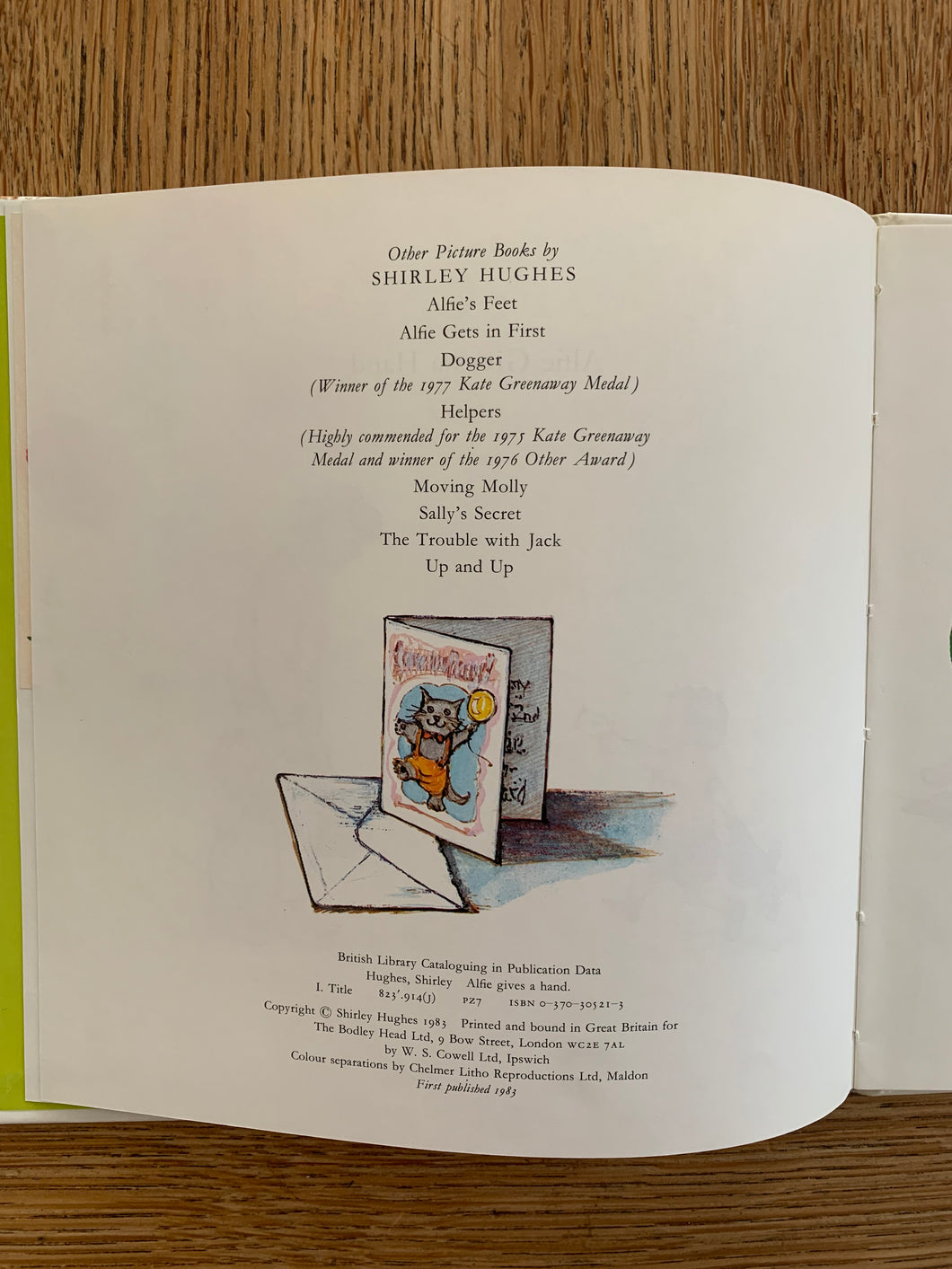 'Alfie Gives a Hand’ written and illustrated by Shirley Hughes. Published by Bodley Head. 1983. UK 1st edition. Laminated pictorial boards. No dust wrapper as issued.