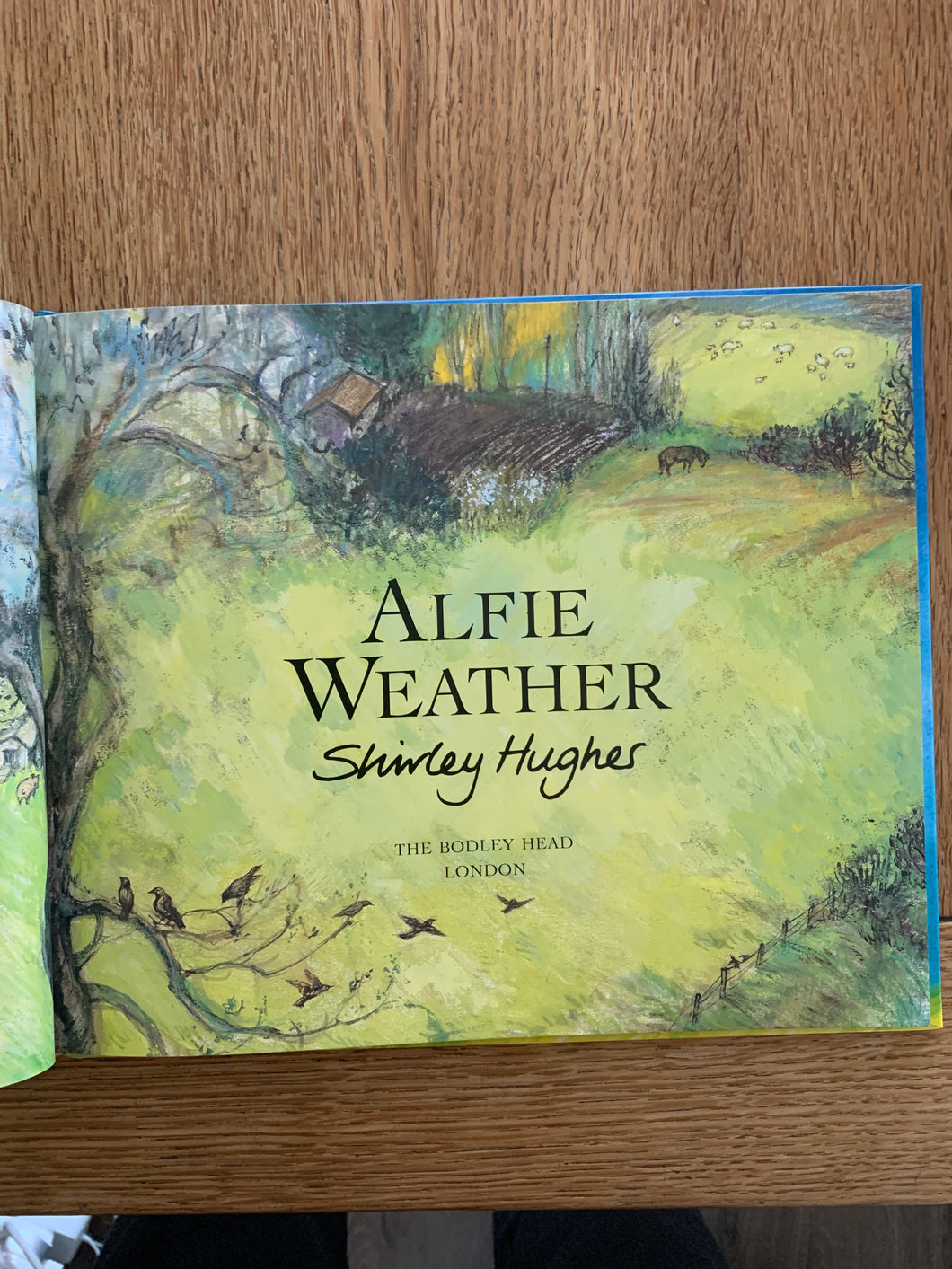 'Alfie Weather’ written and illustrated by Shirley Hughes. Published by Bodley Head. 2001. UK 1st edition. Laminated pictorial boards with matching dust wrapper.