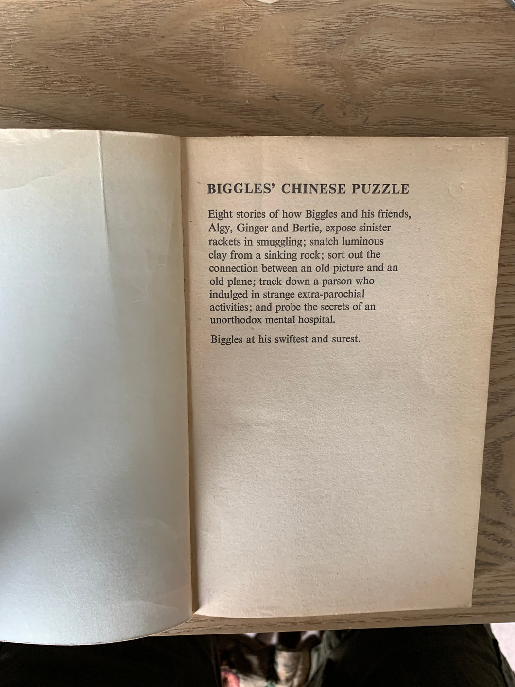 ‘Biggles' Chinese Puzzle’ by Captain W.E Johns. Published by Knight Books. August 1967. UK 1st edition thus. Card Covers.