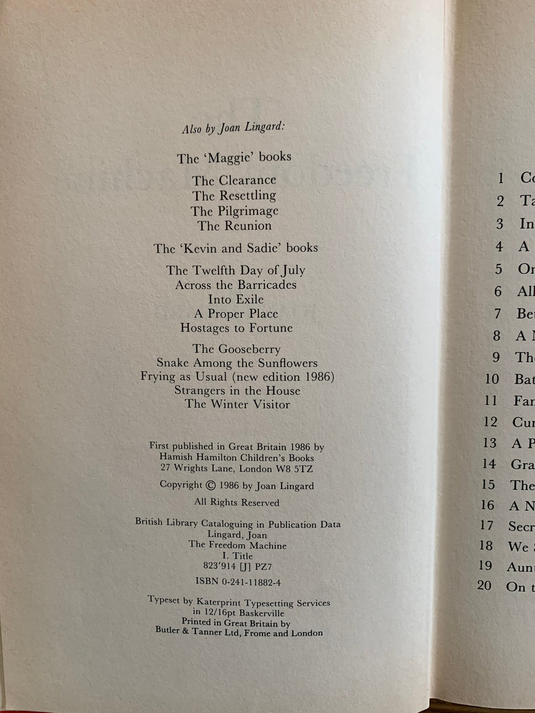 'The Freedom Machine' by Joan Lingard. Published by Hamish Hamilton. 1986. UK 1st edition.