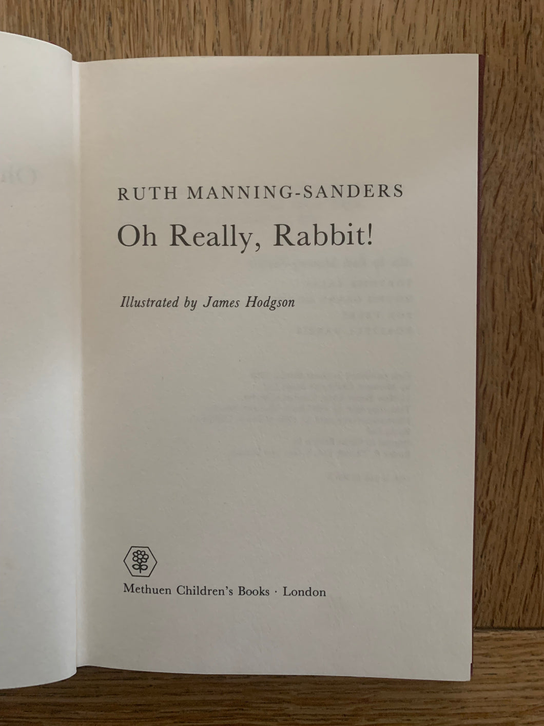 ’Oh Really, Rabbit!’ by Ruth Manning-Sanders. Illustrated by James Hodgson. Published by Methuen. 1980. UK 1st edition.