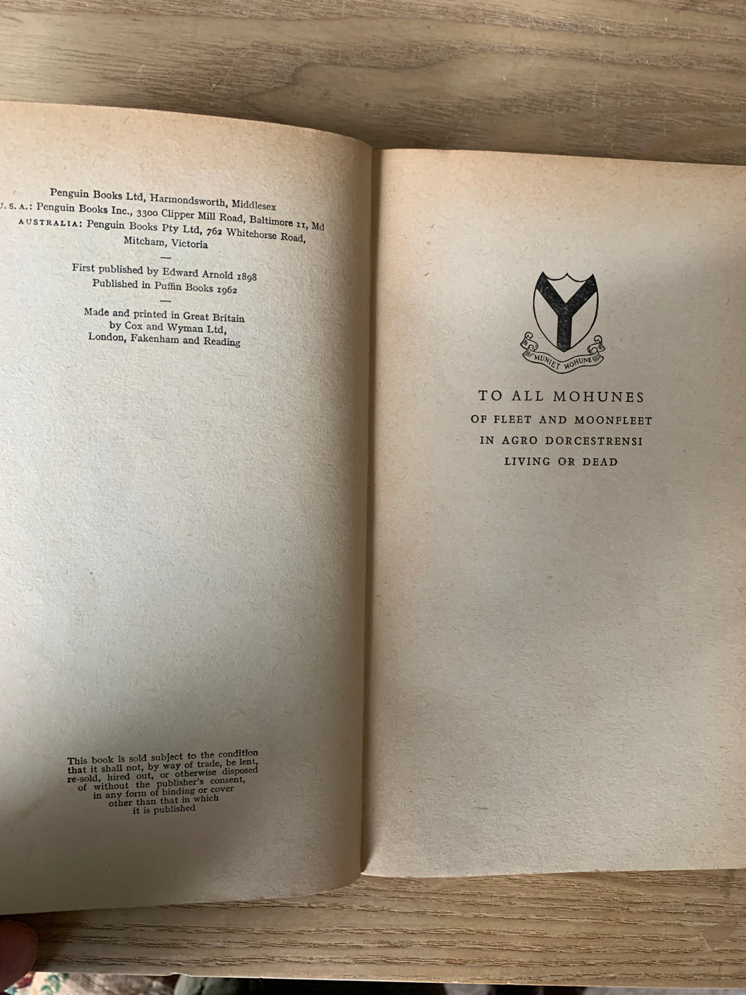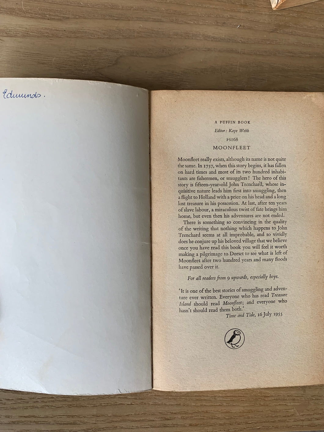 ‘Moonfleet’ by J. Meade Falkner. Illustrated by F.R. Exell. Published by Penguin Books. A Puffin Book. 1962. UK 1st edition thus. Card Covers. Number 168.