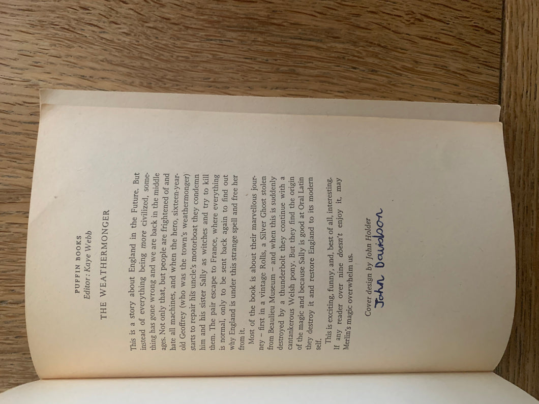 ‘The Weathermonger’ by Peter Dickenson. Published by Penguin Books. 1970. UK 1st edition. Card Covers. A Puffin Book.