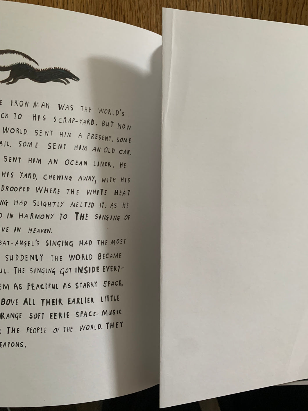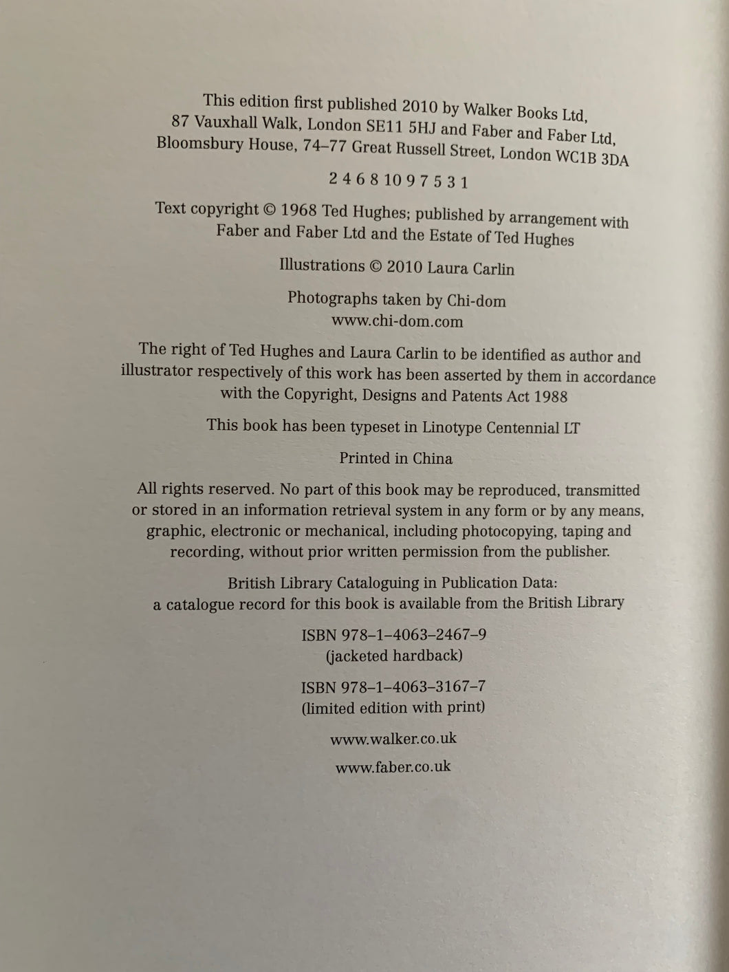 ‘The Iron Man’ by Ted Hughes. Illustrated by Laura Carlin. Published by Faber and Faber and Walker Books. 2010. UK 1st edition thus. Decorated boards in dust wrapper.