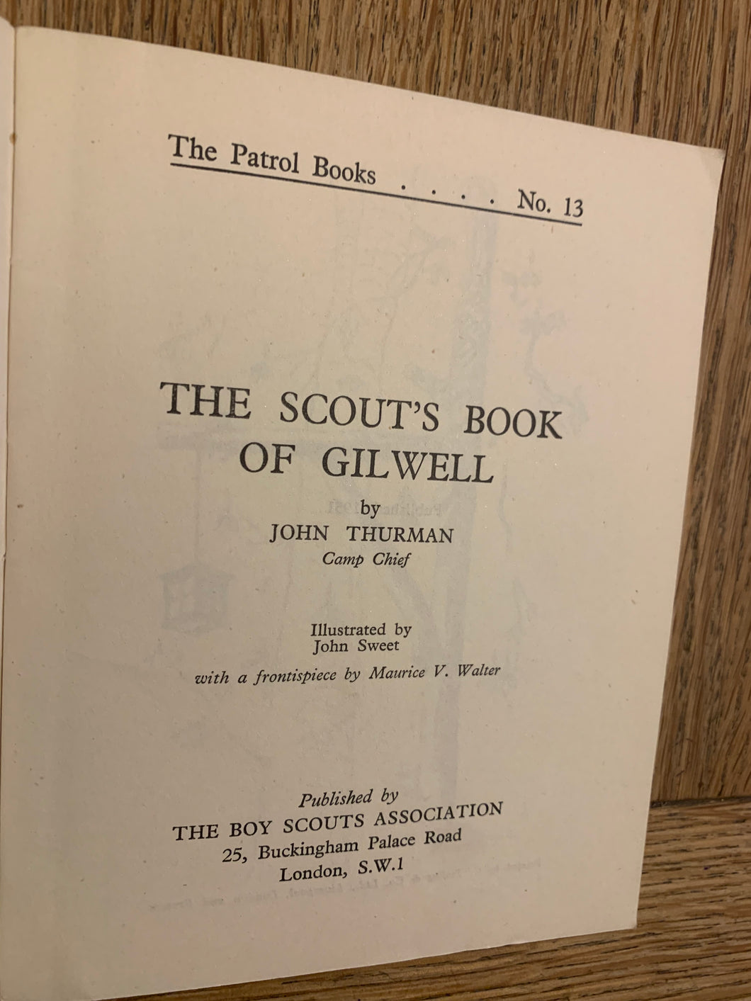 ‘The Scouts Book of Gilwell’ by John Thurman. Illustrated by John Sweet. Published by The Boy Scouts Association. 1951. UK 1st edition. Card covers with no dustwrapper as issued. 32pp.