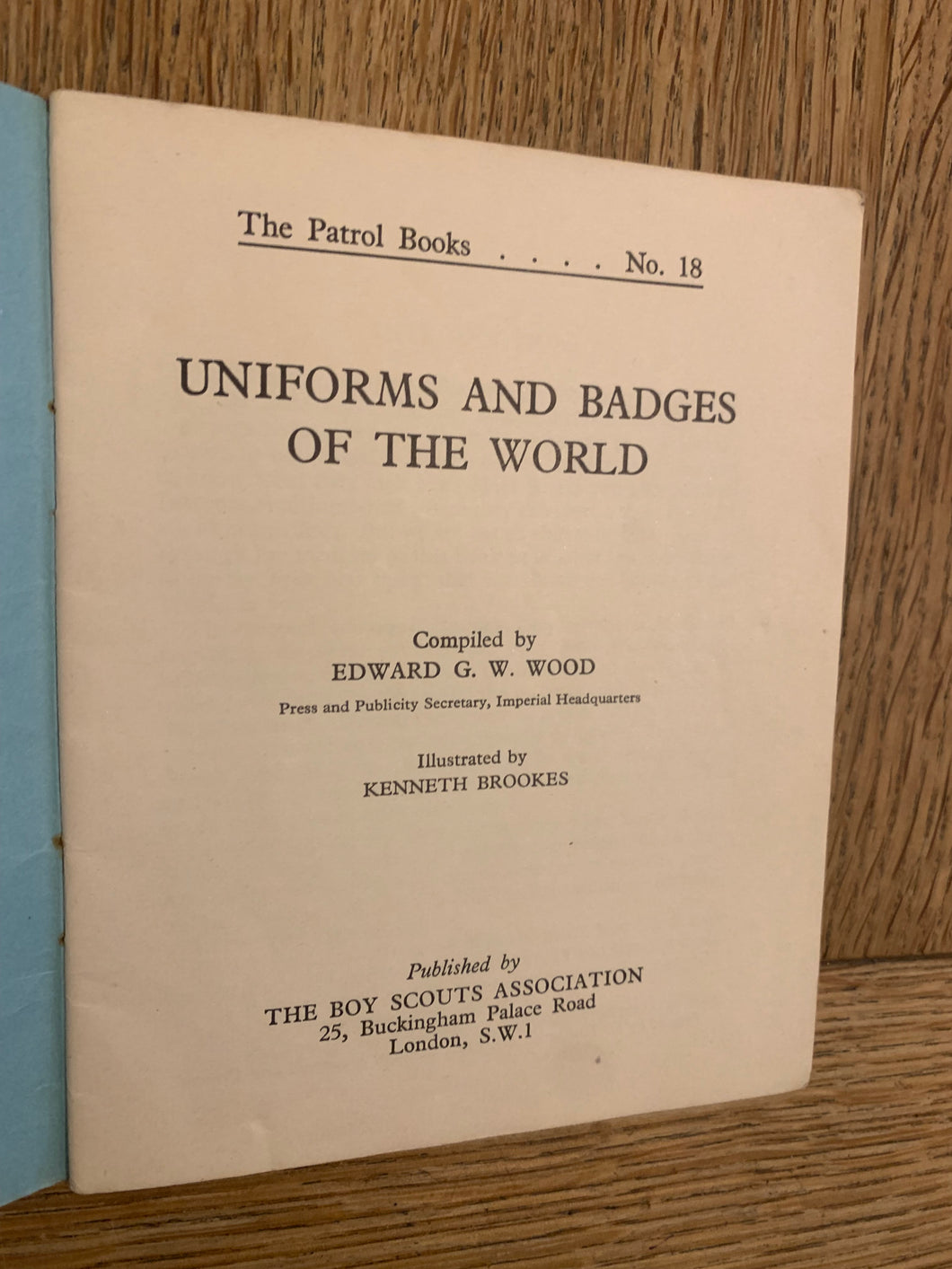 ‘Uniform and Badges of the World’ by Edward G. Wood. Illustrated by Kenneth Brookes. Published by The Boy Scouts Association. 1954. UK 1st edition. Card covers with no dustwrapper as issued. 32pp.