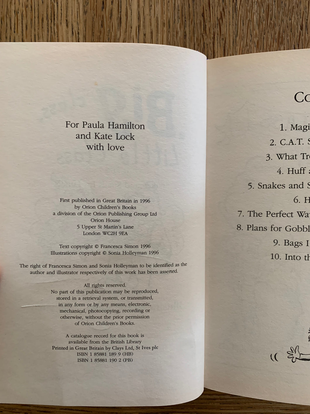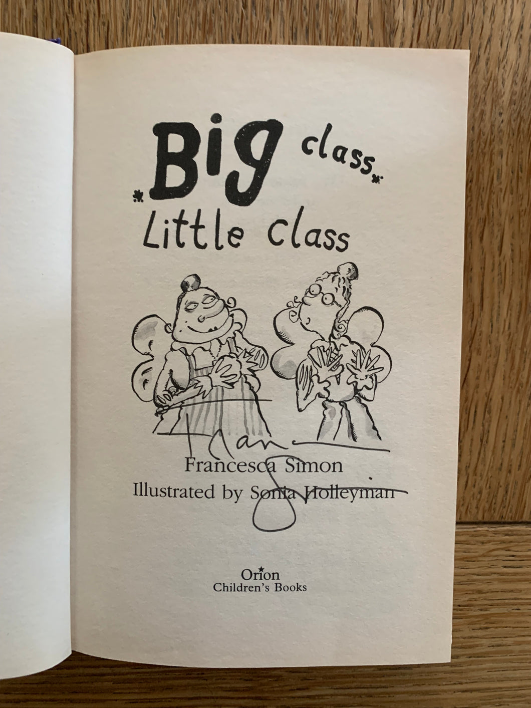 'Big Class, Little Class' by Francesca Simon. Illustrated by Sonia Holleyman. Published by Orion Children's Books. 1996. UK 1st edition. Laminated pictorial boards. No dust wrapper as issued.
