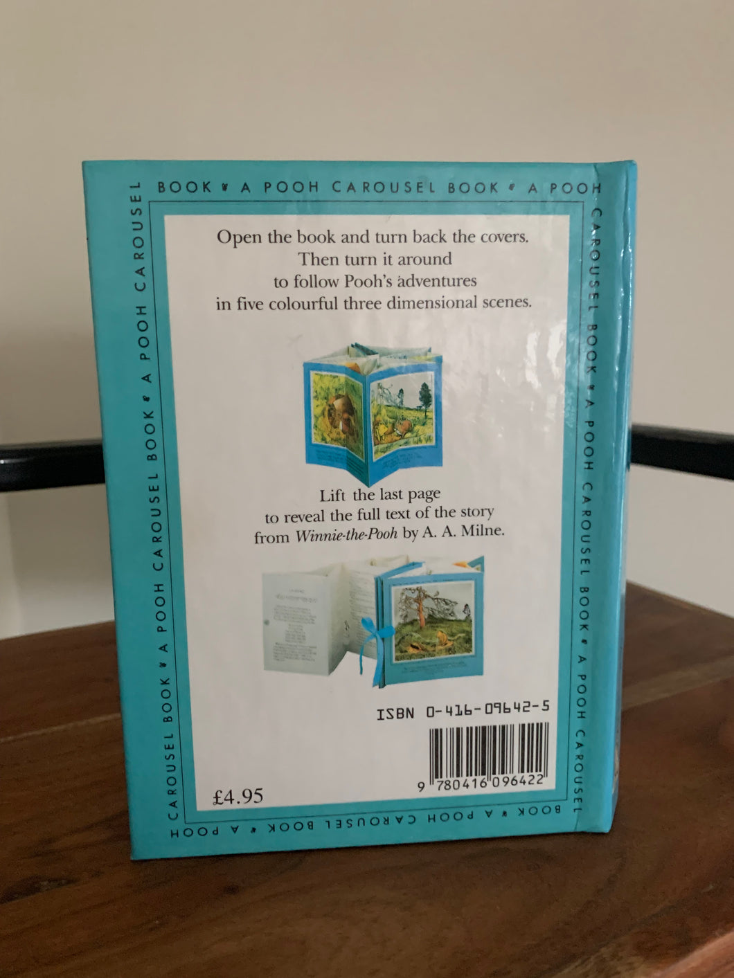 'Pooh Goes Visiting - A Pooh Carousel Book' by A.A.Milne, with decorations after E.H.Shepard. Published by Methuen. 1989. Reprint edition. Laminated pictorial boards with no dust wrapper as issued.