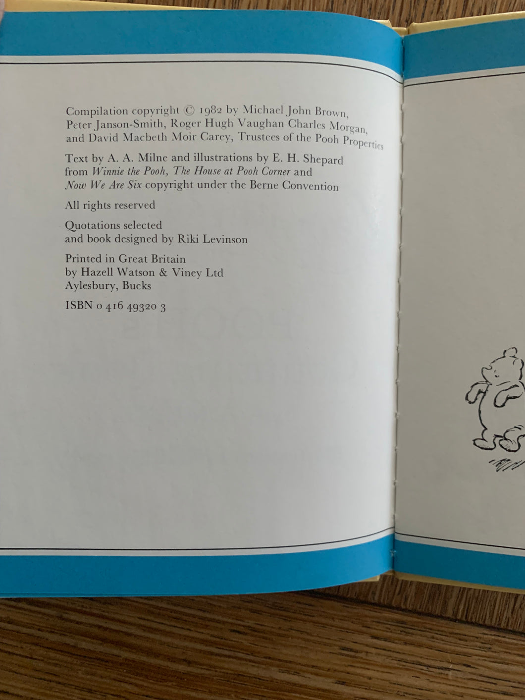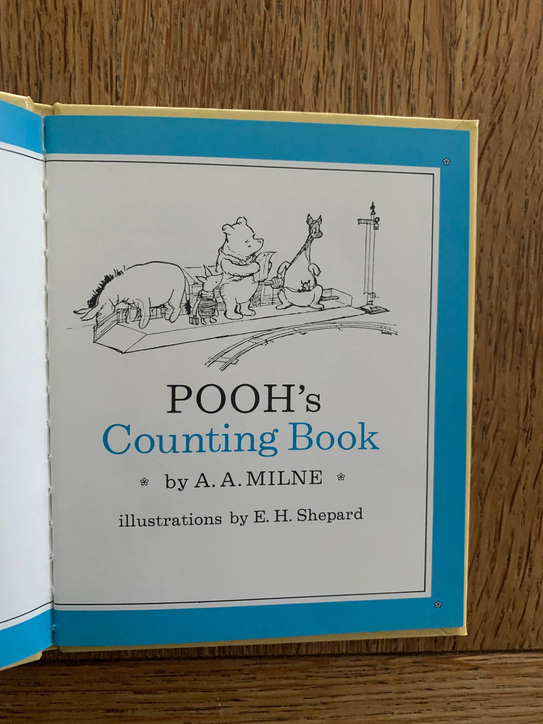 'Pooh's Counting Book' by A.A.Milne, illustrated by E.H.Shepard. Published by Methuen. 1982. UK 1st edition. Laminated pictorial boards with no dust wrapper as issued.