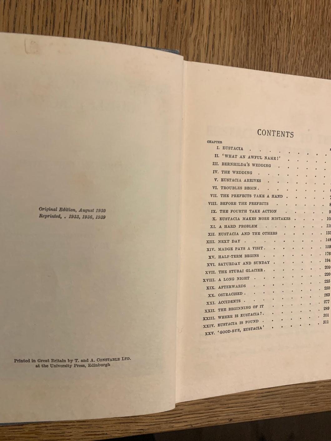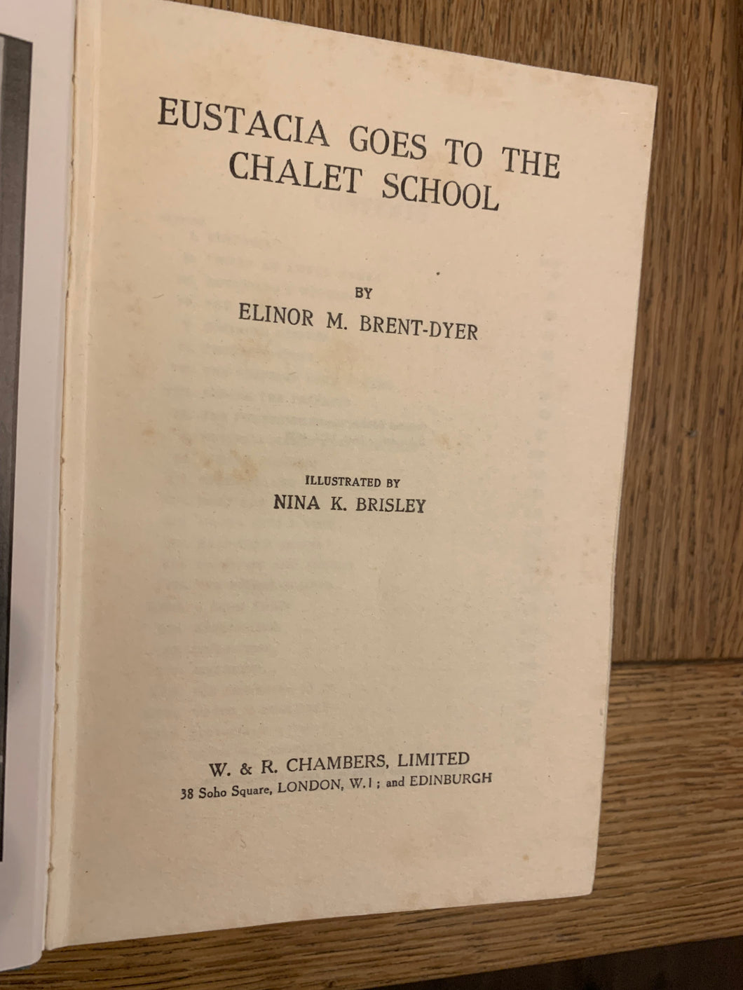 'Eustacia goes to the Chalet School' by Elinor M. Brent Dyer. Illustrated by Nina K. Brisley. Published by Chambers. 1939. UK reprint edition.