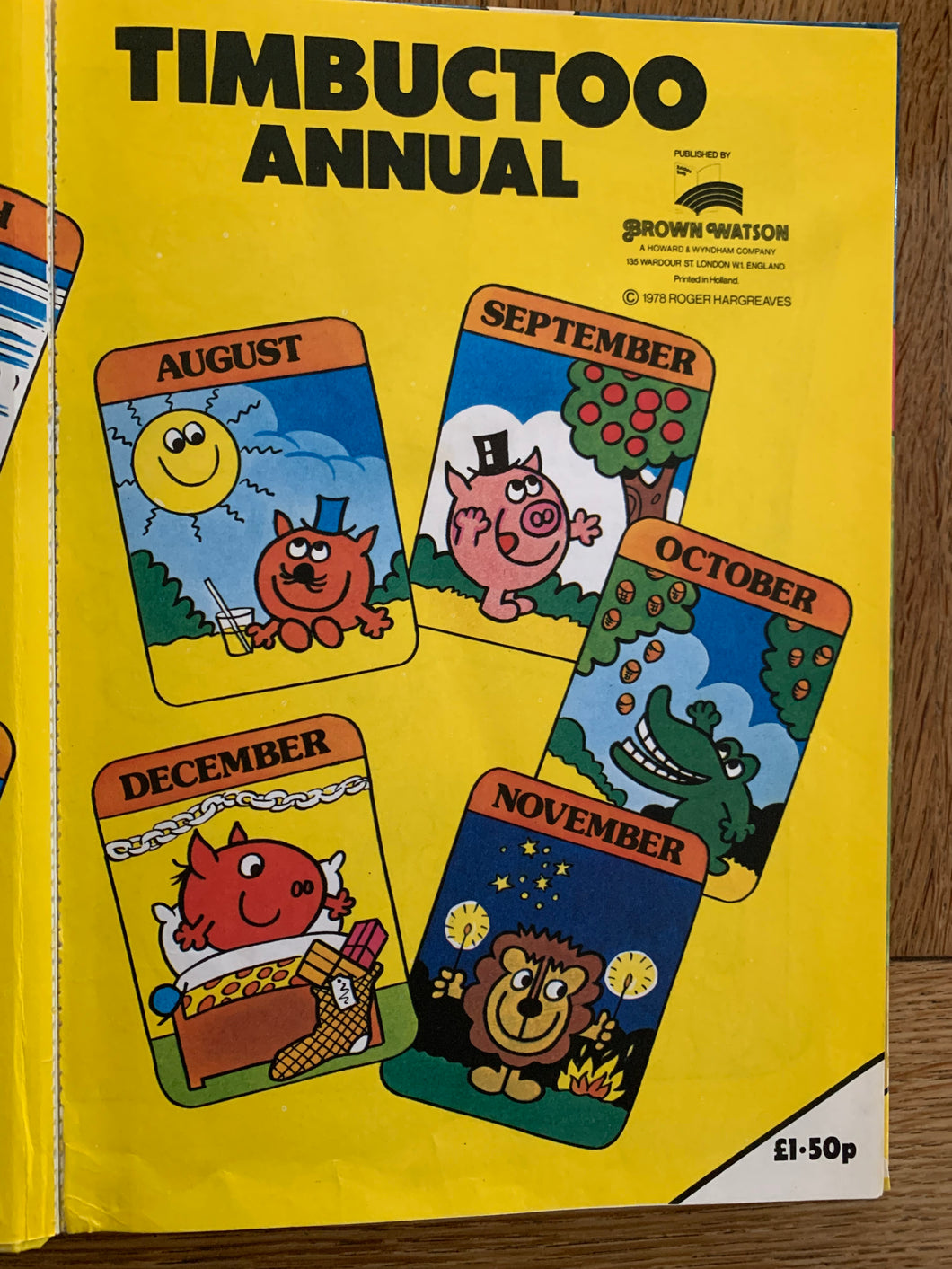 'Timbuctoo Annual’ by Roger Hargreaves. Published by Brown Watson. 1978. UK 1st edition. Laminated pictorial boards. No dust wrapper as issued.